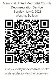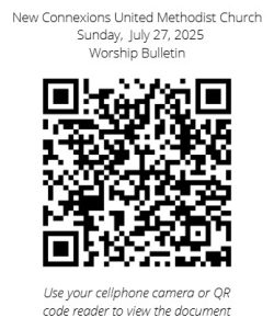 Click here for this week’s Worship Bulletin. If you would like to stream the worship service here and view the document on another device, scan this QR code with that device to quickly see the Worship Bulletin.