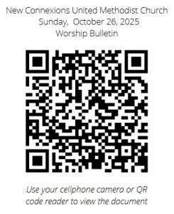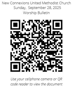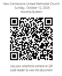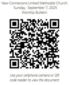 Click here for the Worship Bulletin. If you would like to stream the worship service here and view the document on another device, scan this QR code with that device to quickly see the Worship Bulletin.